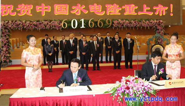 中國水電(股票代碼601669)首次公開發(fā)行A股上市儀式10月18日上午在上海證券交易所舉行。中國電力建設(shè)集團(tuán)公司董事長、中國水利水電建設(shè)股份有限公司董事長范集湘,中信建投證券股份有限公司董事長兼總裁王常青,中銀國際證券有限責(zé)任公司副執(zhí)行總裁任勁,國務(wù)院國資委副秘書長閆曉峰先后致辭;范集湘董事長與上海證券交易所副總經(jīng)理徐明簽訂上市協(xié)議書;國務(wù)院國有企業(yè)監(jiān)事會主席李志群和中國電力建設(shè)集團(tuán)公司董事長、黨委副書記、中國水利水電建設(shè)股份有限公司董事長范集湘共同為中國水電上市鳴鑼。
