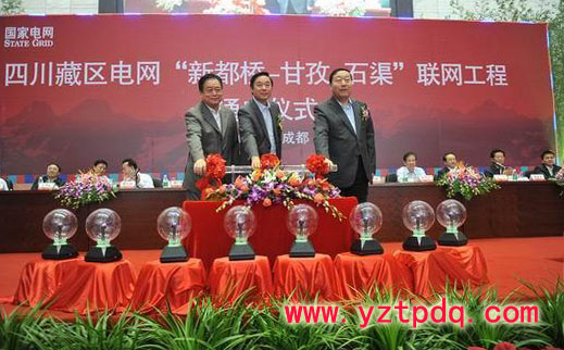 9月19日上午,在四川省電力公司本部大樓,四川省委書記劉奇葆,省委副書記、省長蔣巨峰和國家電網(wǎng)公司總經(jīng)理、黨組書記劉振亞共同按下啟動裝置,四川藏區(qū)電網(wǎng)新都橋—甘孜—石渠電網(wǎng)聯(lián)網(wǎng)工程正式通電。這標志著四川甘孜州西北部電網(wǎng)告別了長期孤網(wǎng)運行的歷史,正式接入國家電網(wǎng),對于四川藏區(qū)從根本上解決缺電和無電問題,加快水電開發(fā),促進資源優(yōu)勢轉化具有重要意義。