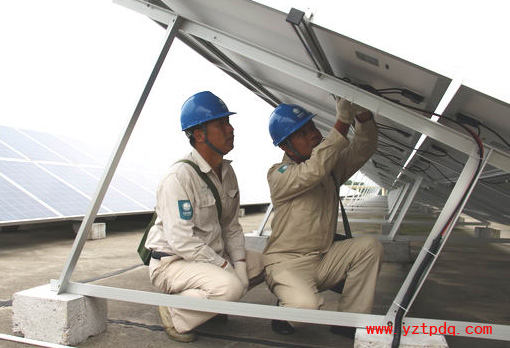 2014年9月16日,國網(wǎng)揚州市江都供電公司工作人員深入基層,來到“江蘇光伏賣電第一人”朱啟杰以及其他分布式光伏發(fā)電用戶,為他們解決光伏發(fā)電和并網(wǎng)中遇到的問題,促進江都分布式光伏發(fā)電產(chǎn)業(yè)的快速發(fā)展。目前,揚州市江都區(qū)有32家分布式光伏發(fā)電用戶申請并網(wǎng),已經(jīng)并網(wǎng)20家,其中企業(yè)為3家,個人為17家,并網(wǎng)總?cè)萘繛?10千瓦,在江蘇省各縣(市、區(qū))名列前茅。圖為江都供電公司員工為揚州永力電子公司120千瓦分布式光伏發(fā)電裝置檢修線路。
