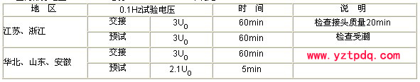 3、從早期國外部分電力公司較早試用交流耐壓的經(jīng)驗來看,例如加拿大安大略水電局對額定電壓13.8kV和8kV的橡塑電纜,5min的交流耐壓值也是接近2Uo。此標(biāo)準(zhǔn)用了6年(1983~1989年),認(rèn)為是合適的。這也是一種旁證,說明我國一些地區(qū)制定的電壓標(biāo)準(zhǔn),目前看來是比較合適的,可以試用一段時間,再總結(jié)經(jīng)驗。
