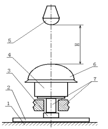 1─鋼錐 2─安全帽 3─頭模 H─沖擊距離