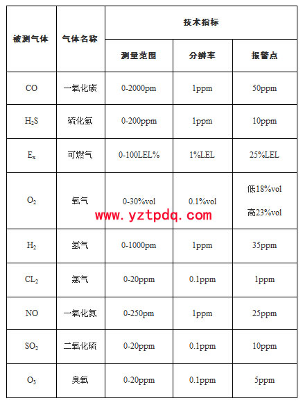 6、 響應(yīng)時間: 氧氣<30S;一氧化碳<40s;可燃?xì)?lt;20S;硫化氫 <40S (其他略)。