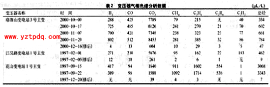 1) 變壓器運(yùn)行時(shí)出現(xiàn)內(nèi)部故障原因往往不是單一的,一般存在熱點(diǎn)的同時(shí)還有局部放電,而且故障是在不斷發(fā)展和轉(zhuǎn)化的。