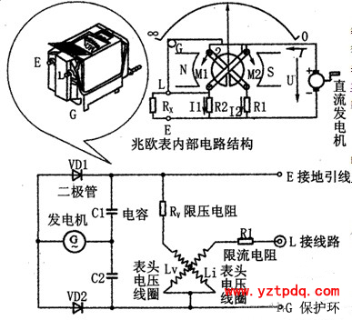 用于測量高值電阻和絕緣電阻的儀表叫做搖表,現(xiàn)在新型產(chǎn)品通常稱為絕緣電阻測試儀或者絕緣電阻表,有時也稱為兆歐表。其中老款搖表的外形如下右圖所示:搖表(絕緣電阻表)主要結(jié)構(gòu)是由手搖發(fā)電機、電磁式無機械反作用的表頭組成,對外有接線柱(L:線路段、E:接地端、G:屏蔽端)。新型的絕緣電阻測試儀通常和數(shù)字萬用表差不多的外形。