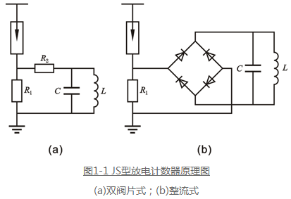 圖1-1(a)示出了JS型雙閥片式結構的放電計數(shù)器原理。當避雷動作時,放電電流流過閥片電阻R1,在R1上的壓降經(jīng)閥片電阻R2給電容C充電,C再對電磁式計數(shù)器的電感繞組L放電,使其移動一格,記一次數(shù)。改變R1及R2的阻值,可使計數(shù)器具有不同的靈敏度,一般zui小動作電流為100A(8/20μs沖擊電流)。
