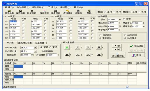 程序輸出時,參與變化的量將按設定步長和間隔時間自動變化,其他量值固定不變。直到繼電器動作,記錄動作值和動作時間。停止輸出,程序自動返回。