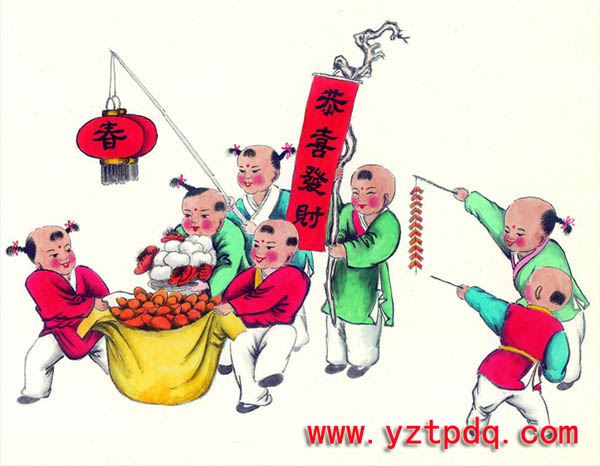 送灶以后,就真正開(kāi)始了年貨的采購(gòu)與囤積,貼春聯(lián)、貼門(mén)神、貼福字、貼年畫(huà),這些寓意吉祥的大紅色的紙張給新年帶來(lái)了無(wú)處不在的喜氣與熱情,往往舊式有前后門(mén)的房屋會(huì)在前門(mén)貼春聯(lián),后門(mén)貼門(mén)神畫(huà)——唐朝初年的兩位大將秦叔寶和尉遲公。據(jù)說(shuō)大門(mén)上貼上這兩位門(mén)神,許多妖魔鬼怪都會(huì)避而遠(yuǎn)之,而小孩子們則是對(duì)這兩位形象頗有點(diǎn)猙獰的門(mén)神既怕又敬、既畏又尊,很是有趣。家里屋內(nèi)的墻壁或房門(mén)上貼得都是些喜氣洋洋的年畫(huà),比如麒麟送子、和氣娃娃等,現(xiàn)在的家庭大多以一卷卷漂亮精美的掛歷取代了各種花花綠綠的年畫(huà),而“福”字卻貼得多了起來(lái),那是因?yàn)樵絹?lái)越多的商家們?cè)敢庠谛履曦浧分袏A上一兩張“福”字作為贈(zèng)品,“福”字得倒著貼在門(mén)或窗戶上,這樣過(guò)路的人們看見(jiàn)了,會(huì)指著說(shuō)“福”倒了,那么福就真的要到了哦。