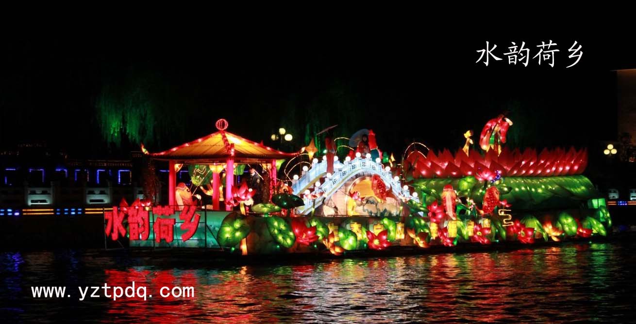 “水韻荷鄉(xiāng)”號(hào)花船由揚(yáng)州拓普電氣科技有限公司所在地寶應(yīng)縣承制的。寶應(yīng)歷史悠久、人杰地靈,素有“寶地”美譽(yù)。整個(gè)花船以“生態(tài)、綠色”為主題,展現(xiàn)了“萬頃荷花別樣紅,捧出綠色也醉人,水鮮美食遠(yuǎn)名揚(yáng)”的寶應(yīng)生態(tài)畫廊情景,更寓意著古寶應(yīng)的靈氣,水寶應(yīng)的秀氣,洋寶應(yīng)的大氣。