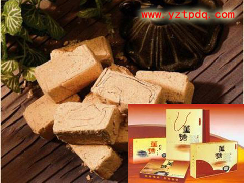 董糖又叫酥糖或叫董酥糖。秦郵董糖是揚(yáng)州高郵的傳統(tǒng)名特產(chǎn)品,已有三百多年歷史。用糯米粉、芝麻、白糖、麥芽等原料,手工精制而成,拆開包裝紙,米黃色的董糖便呈現(xiàn)在你的眼前。每塊有48層軟片組成,厚薄均勻,層次分明,口味純正,入口酥軟,味美香甜,老少皆宜是節(jié)日饋贈佳友的首選禮品。