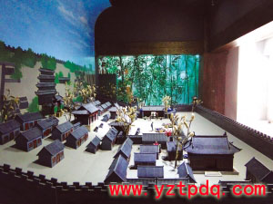 根據(jù)這一典故,在東關(guān)街歷史文化展示館內(nèi),便制作了一幅規(guī)模宏大的縮微“貴妃出嫁”場(chǎng)景。記者看到,場(chǎng)景中,不僅有抬花轎、抬彩禮的伴隨左右的丫鬟侍女,更有鳴鑼開道的,騎著高頭大馬的和扛著各種禮儀器的,中間還有三座牌樓,雖然人物只有10厘米左右高,但每個(gè)人物的造型,甚至面部表情都極為生動(dòng)。