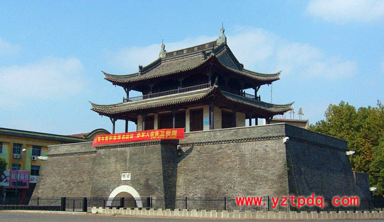 位于市區(qū)城河景觀帶,是儀征較為完整的古城遺址。建于明代成化23年(公元1487年),是儀揚歷史上漕運的交通要沖。樓體建在有拱門的通道的高臺基之上,面闊三間,兩層,層面鋪簡瓦,為帶徊廊的重檐九脊歇山頂式結構建筑。有碑記兩方,一方為嘉靖甲申年間(公元1542年)記載鼓樓被辟為關王祀祠的情況;一方為嘉靖44年間(公元1565年)記載倭寇侵犯我東南沿海的史實。樓南有“小秦淮”之稱的儀城河,登樓四望,城市風貌盡收眼底。