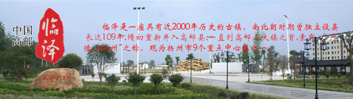 高郵市臨澤鎮(zhèn)(2014年被列為全國重點(diǎn)鎮(zhèn))由原臨澤鎮(zhèn)、周巷鎮(zhèn)合并,位于高郵東北角,高寶興三縣(市)交界處,因東臨蘆葦澤地后得名。 臨澤是千年古鎮(zhèn)、魚米之鄉(xiāng)、商貿(mào)重鎮(zhèn)。早在南北朝時(shí)期,臨澤就已形成集鎮(zhèn)雛形,宋明帝泰豫元年(公元472年)起,曾獨(dú)立設(shè)縣長達(dá)109年,自古人杰地靈、商賈云集,素有“廣陵小揚(yáng)州”之稱。