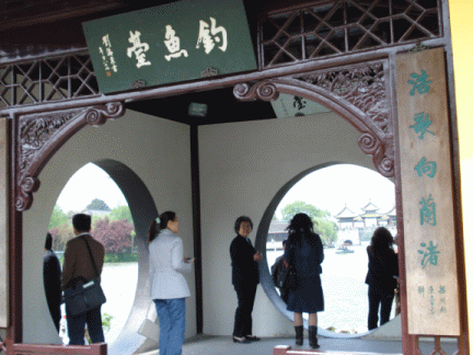 在中國,以“釣魚臺”命名的景點(diǎn)非常多,但揚(yáng)州的釣魚卻是眾多釣臺中體量最小,也是極富特色的一座。它是中國名亭建筑的典范,是中國園林“框景”藝術(shù)的代表作品。站在釣魚臺斜角 60 度,您可以在北邊的圓洞中看到五亭橋橫臥波光:而南邊的橢圓形洞中則正好可以看到巍巍白塔。這一景象一彩一素,一橫一臥,真是堪稱絕妙。這里也是外地游客到揚(yáng)州一定要留影的地方。那洞中借景的畫面正好對應(yīng)了“三星拱照”的名稱。