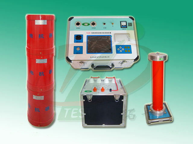 成套設備主要由變頻調(diào)壓電源1臺、勵磁變壓器1臺、高壓電抗器3臺、電容分壓器1臺、附件箱1件組成。